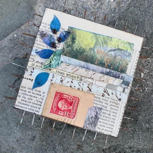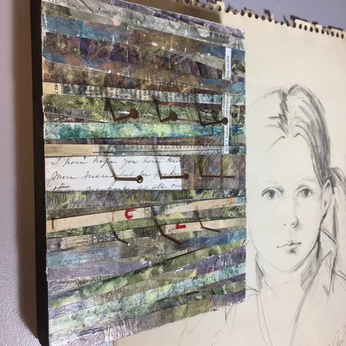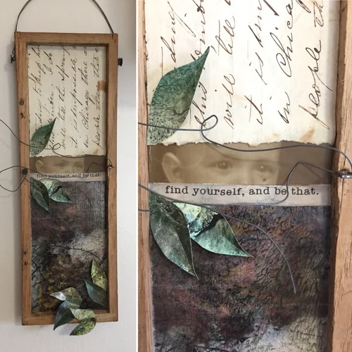 Wood box, old letter, vintage family photo, wire, altered paper.